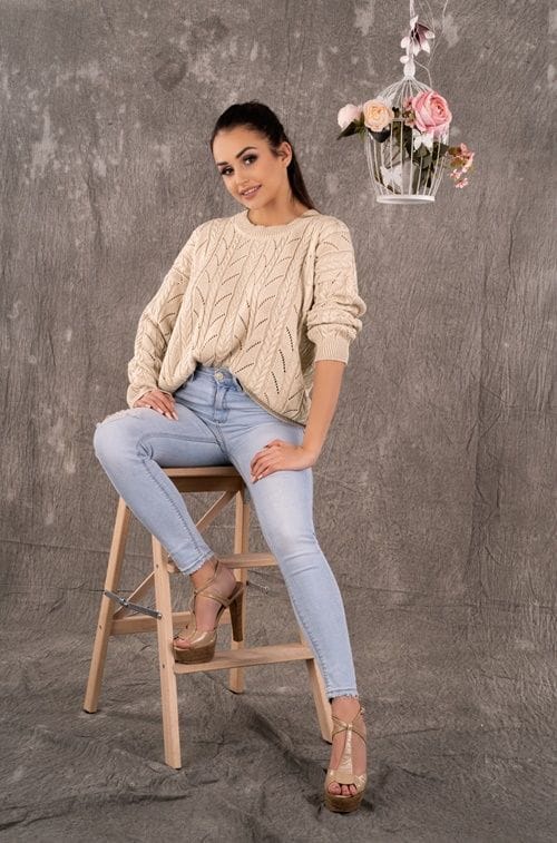 One of the most fashionable sweaters today - a proposal with a delicate, openwork weave, in an elegant, beige color. Soft, delicate, with character. The weave with subtle clearances allows you to feel free and comfortable in any situation. Mix it with jeans, a pencil skirt, trendy versions of black wet look pants. Composition: 100% acrylic.