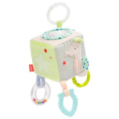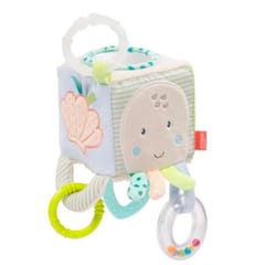 Mascot, Educational Cube from the Collection: Sea Beautiful educational toy, with elements for grabbing and cuddling, will delight every child's heart. The cube will fill the time with fun both when traveling and at home. Thanks to the practical ring, it can be easily attached to a stroller, baby carrier, car seat or cot. This wonderful toy, full of pleasant colors, patterns and applications, made of extremely soft and delicate material for the baby's skin, is ideal for grabbing and cuddling, stimulates imagination and curiosity, as well as the senses of sight and hearing. Develops the first motor and acoustic skills. The cube squeaks, rings, rustles. Thanks to it, the child can discover many sounds and himself in a small mirror. The toy also contains a soft teether, an essential attribute of every teething baby. This cute mascot in a short time will become a faithful companion of the child throughout the day and night. Functions: Educational toy to train conscious grasping. Thanks to charming applications depicting: Seahorse, Starfish, Octopus and Shell, it stimulates the imagination, develops the senses. It encourages play, develops concentration and small motor skills. The mirror encourages you to get to know your face. A variety of material textures stimulate touch. The teether brings relief when teething. Product details: Educational cube with mirror, soft teether, ratchet, rustling material and bell in a captivating mascot. Fastening ring for easy installation at the cot, stroller, baby carrier or car seat. Upper material: velvet, printed fabric, muslin. Filling: 100% polyester. Washable at 30C. Toy size: 10 cm x 10 cm x 10 cm. Package dimensions: 10 cm x 21 cm x 21 cm. Perfect gift for babies and toddlers. Age category: 0 - 5 months. All toys of the German brand FEHN are safe for children from 0 years. They are made of the best quality materials. They meet EN71, CE standards. They are tested for safety by independent research institutes. FE54446