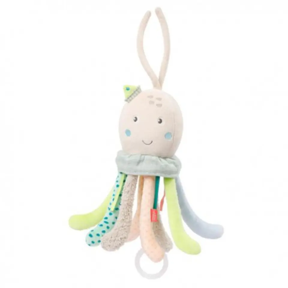 Mascot with Music Box, Octopus from the Collection: Sea Mascot with Music Box, Octopus from the Collection: SeaCharming musical Mascot with Music Box, Octopus from the Collection: Sea, will make all dreams the most beautiful! The toy will enchant every child's heart, inviting them to cuddle and love. It is also a beautiful decoration of the children's room. The mascot is made of extremely soft and delicate material for the child's skin. In addition, it is equipped with a mechanically wound music box with a slow rotation function. After pulling the musical circle, the well-known melody "Brahm's Lullaby" pleasantly sounds, which calms and gently rocks the child to sleep. The octopus can be easily attached to a crib, baby carrier, stroller or child seat, making it not only an ideal way to sleep, but also a favorite companion for children on the go from the first days. Functions: Cuddly toy to hang on cot, stroller, baby carrier, etc. He plays the melody of a quot lullaby; Brahm's Lullaby". It calms, calms down, helps to fall asleep. It stimulates the imagination, develops the senses of sight and hearing. A variety of material textures stimulate touch. Product details: The mascot includes an integrated and removable music box module, playing the melody "Brahm's Lullaby" for 1.5 - 2 minutes. Manually wound music box mechanism, no batteries required. Machine washable at 30C after removing the music box mechanism). Upper material: velvet, printed fabric, muslin, plush, terry. Filling: 100% polyester. Package dimensions: 22 cm x 11 cm x 35 cm. Perfect gift for birth, birthday or baptism for babies and toddlers. All toys of the German brand FEHN are safe for children from 0 years. They are made of the best quality materials. They meet EN71, CE standards. They are tested for safety by independent research institutes. FEHN54033