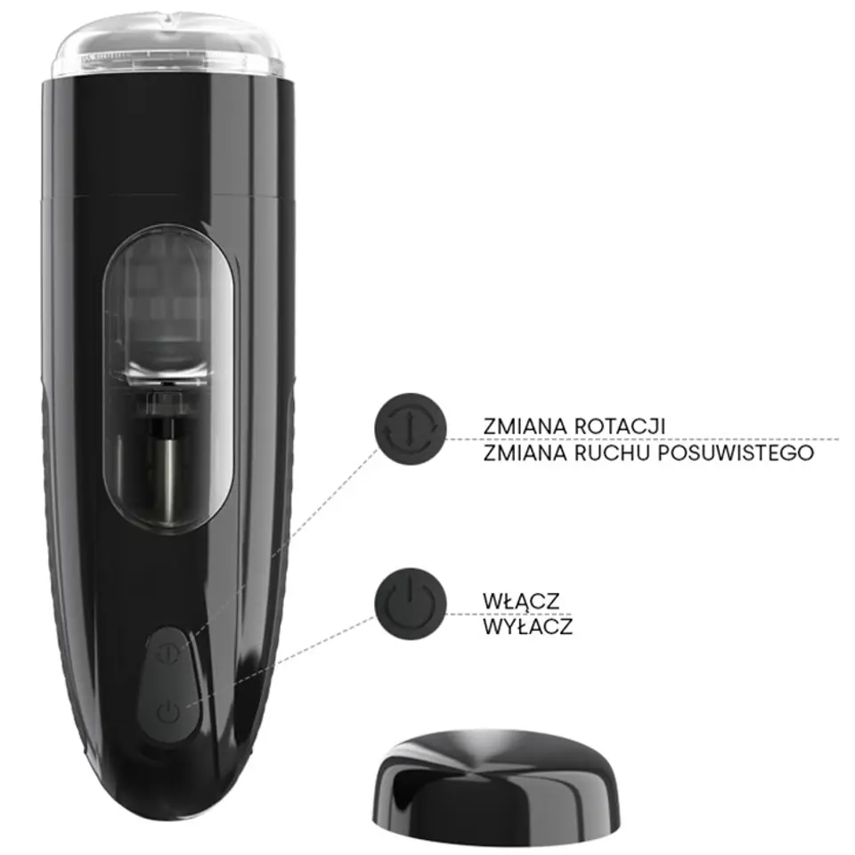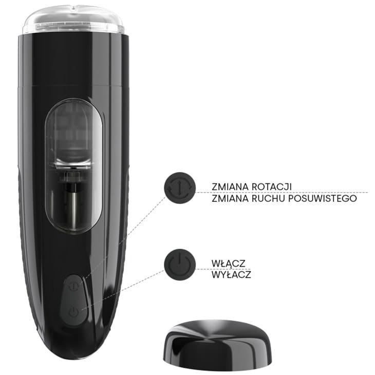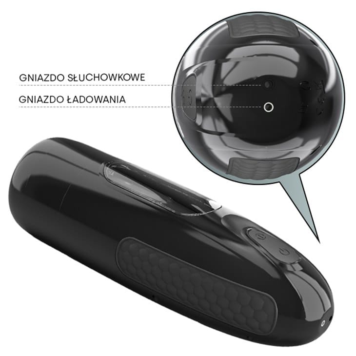 An automatic masturbator that will make you fly away. The reciprocating and rotational movement used in this device makes the inside of the vibrator move in two ways: up and down and massage the penis with a rotational movement. You decide for yourself the speed and strength of these movements. Additional sensations are provided by cybernetic delicate skin, textured interior, suction effect and a feminine voice that will help you reach the top.