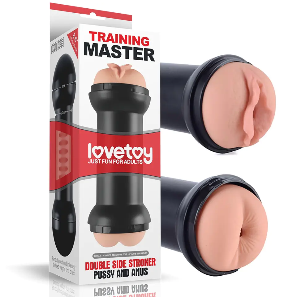 Masturabtor Lovetoy Training Master Double with holes at both ends of Anus + Vagina. Made of elastic and realistic to the touch TPE material (phthalate free, latex-free). The striated tunnel enhances the intense experience.