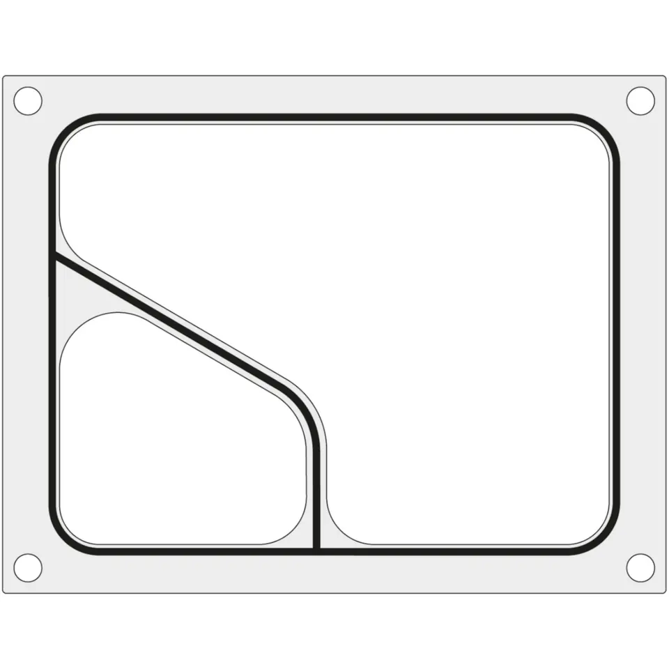 The replaceable matrix for the MANUPACK 190 welding machine for a COLT bipartite tray with dimensions of 227x178 mm, is made of polished aluminum. In addition, it has a black silicone gasket that makes it easier to weld trays.