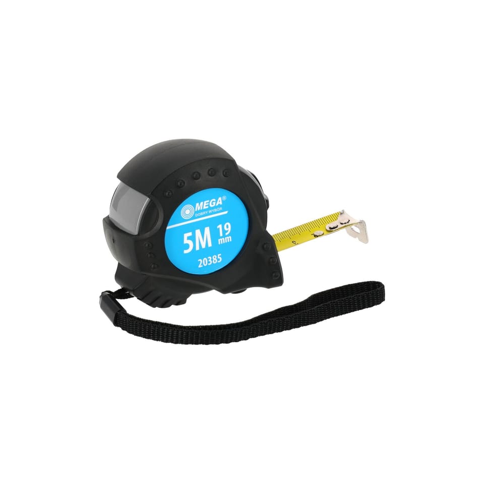 MEASURING TAPE 5M/19MM, 2XSTOP,STRAP,CE,RUBB.CASE,CARD,MEGA