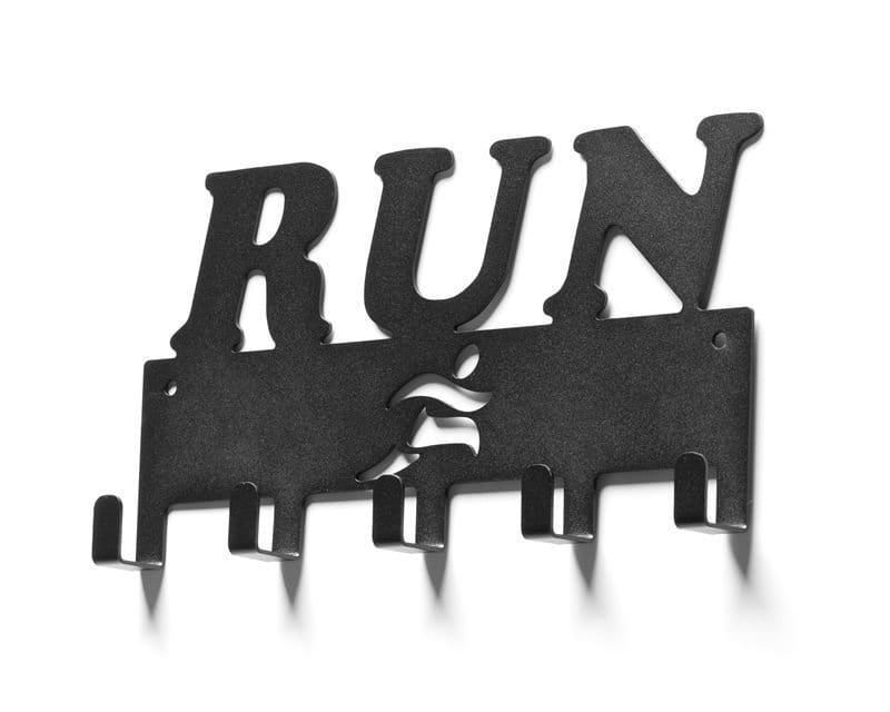 A solid hanger for runners with 5 hooks to properly display the medals won by the sweat of the brow on the running paths. Hanger made of laser-cut metal and powder coated with a decorative motif. Easy to hang on the wall.