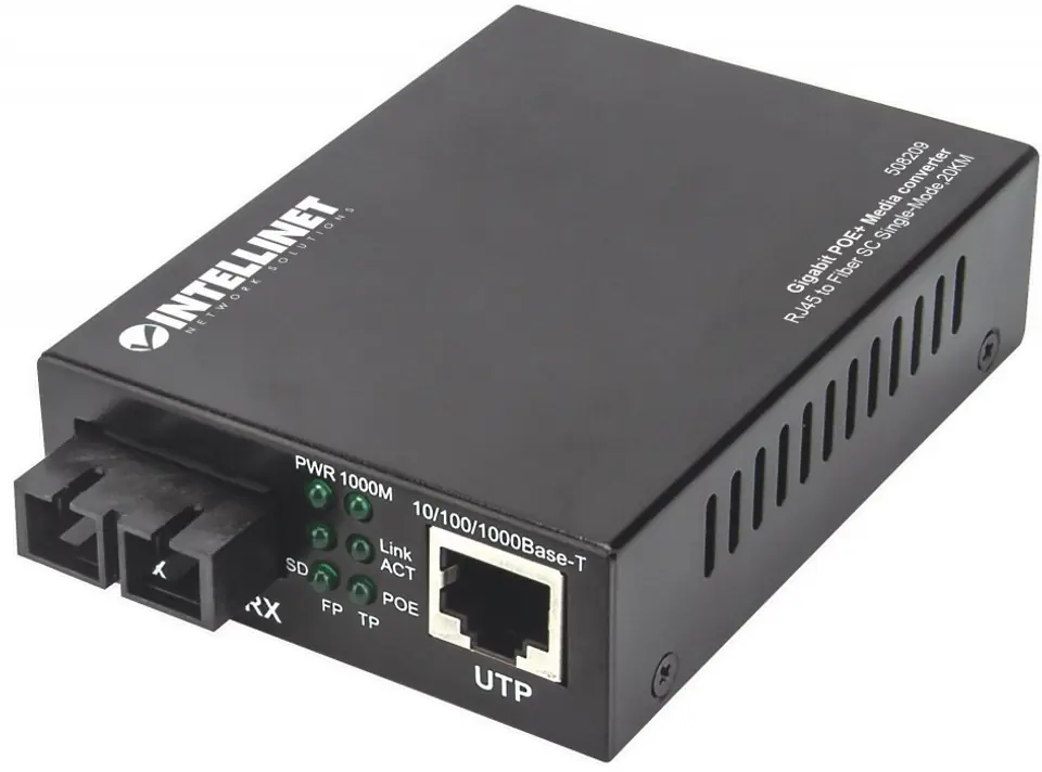 Media converter Gigabit PoE+ 1000Base-T RJ45/1000Base-LX SC) SM 20k