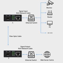 How to properly set up a fiber optic connection?To create a full network connection over fiber, in most cases two media converters are needed - one on each side of the link. Such a configuration is required when the two devices you want to connect (e.g. switches, routers, computers) have only standard RJ45 (Ethernet) ports and no integrated SFP ports. However, if one of the devices already has an SFP port and supports fiber optic modules (e.g., a modern switch), you only need to use one converter on the device side without an optical port.