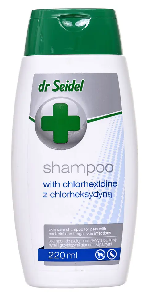 Dr. Seidl's concentrated shampoo with chlorhexidine is an excellent care preparation for use during the treatment of skin inflammation caused by: gram-positive and gram-negative infections, fungal infections (including yeast), hypersensitivity disorders and hormone-dependent dermatoses. Due to its bipolar molecular structure, chlorhexidine has a prolonged effect. Shampoo does not irritate the skin and mucous membranes. It contains mild cleaning agents, making it suitable for frequent use.