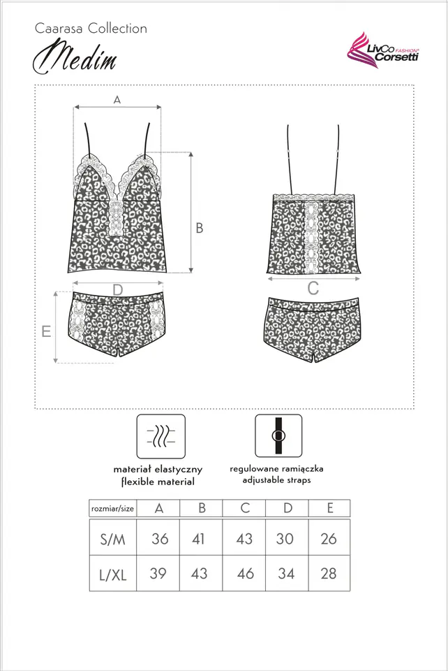 A set of underwear consisting of a T-shirt with straps and shorts. Set with lace finish.