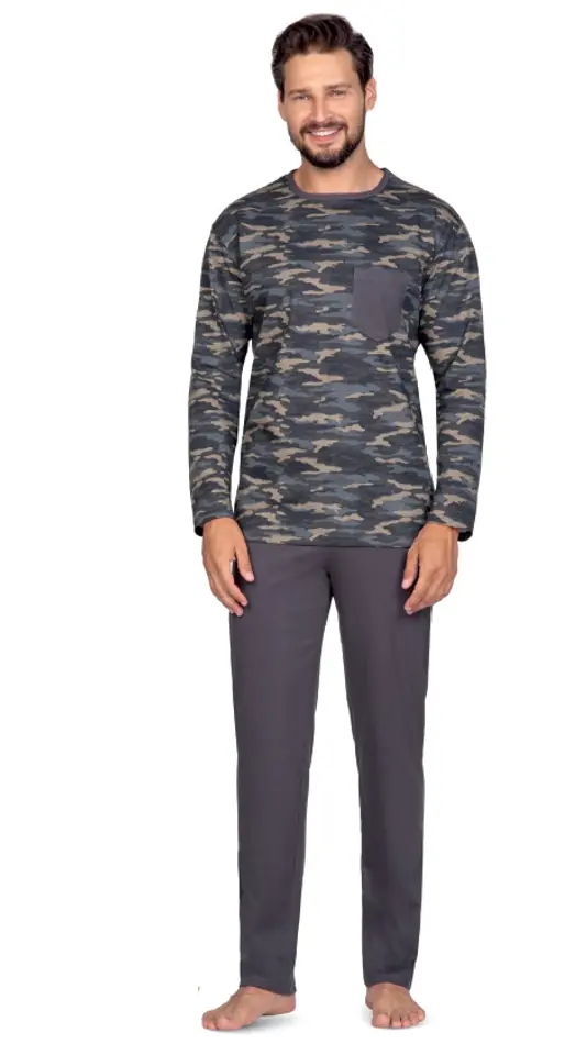 Piżama męska wykonana z wysokiej jakości baweły. Długi rękaw, długie spodnie. Skład: bawełna 100%.