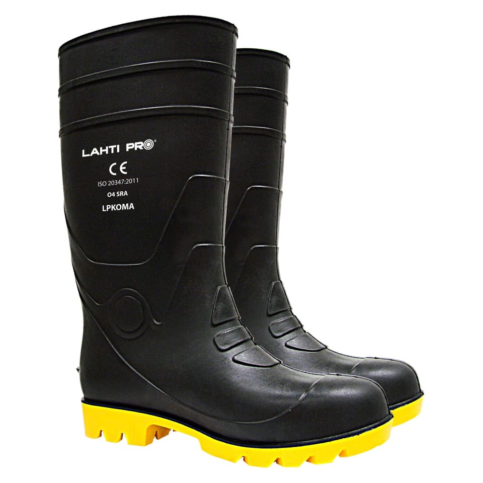 MEN'S WELLINGT., BLACK-YELLOW, HIGH,PVC,O4 SRA,"45",CE,LAHTI