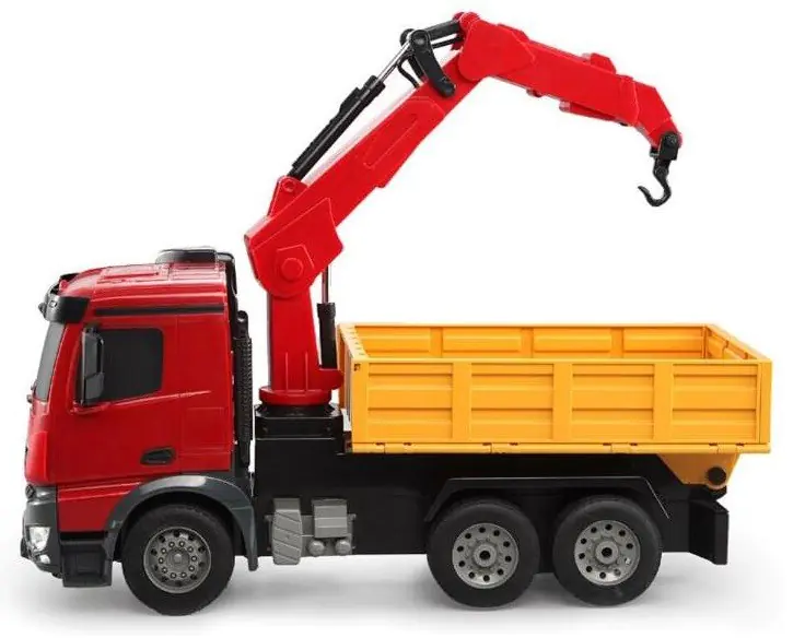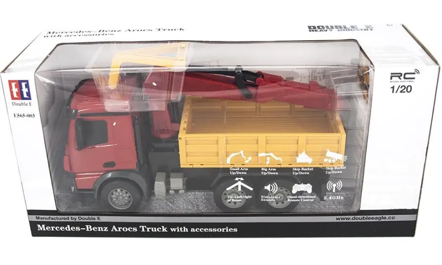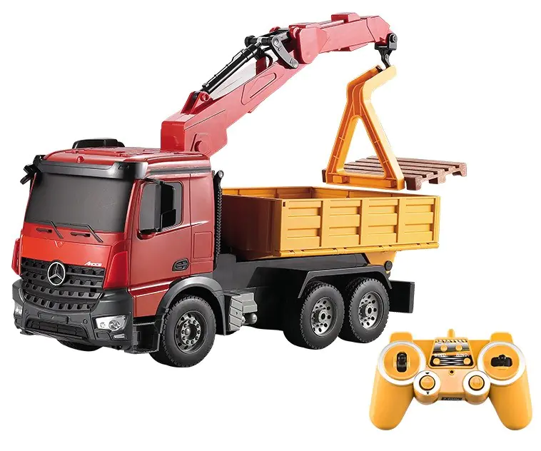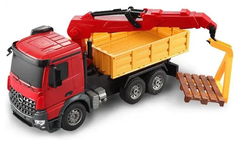 With the Mercedes-Benz Actros remote-controlled crane for handling goods – the perfect gift for those who are no longer satisfied with ordinary driving. The presented toy can ride forward, backward, turn sideways, but also has the function of remote manipulation of the boom, i.e. lowering and lifting the load and turning the arm up to 180 degrees. With the remote control, we can also remotely raise and lower the semi-trailer. In short, we are dealing with a fully functional machine, ready to work.