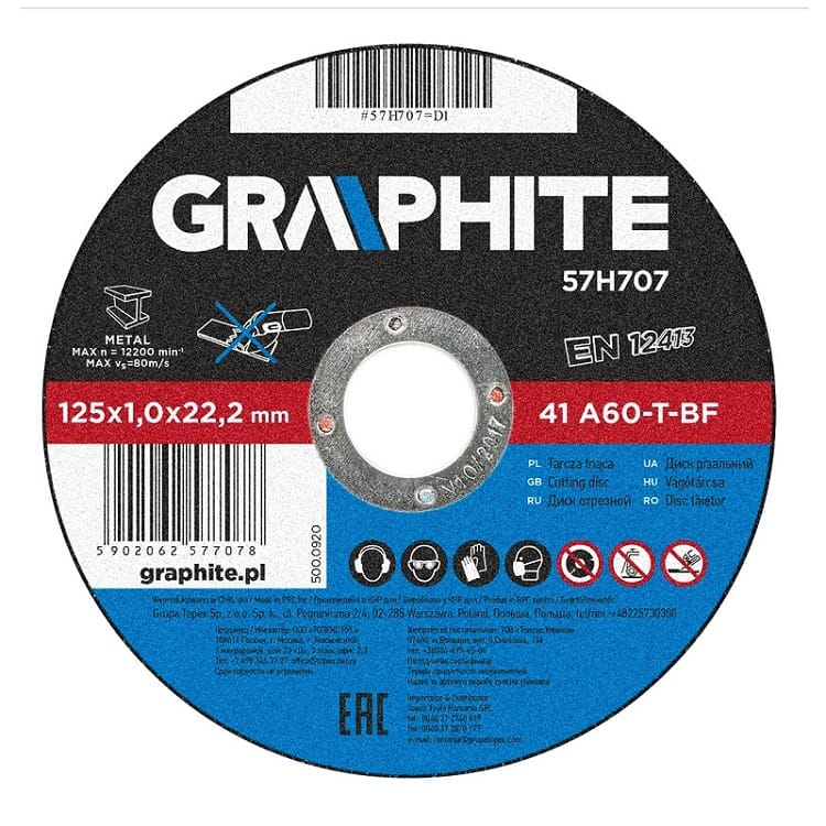 Metal cutting disc 125x1.0x22.2mm Graphite