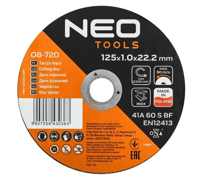 Metal Cutting Discs 41A 60 S BF -125x1,0x22,23 STEEL/INOX, 100 pieces in a bucket Made in Poland
