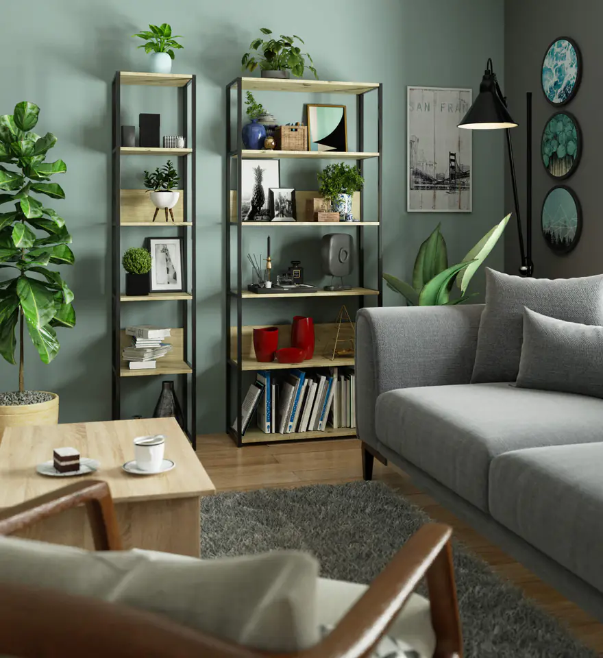 - elegant appearance: the bookcase is characterized by a simple form, the frame is in black while the board is in artisan oak,