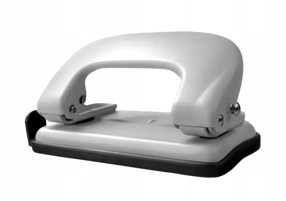 Metal office punch in a matte housing. It has a lever lock, a page center indicator and a format delimiter. Punches up to 10 sheets.