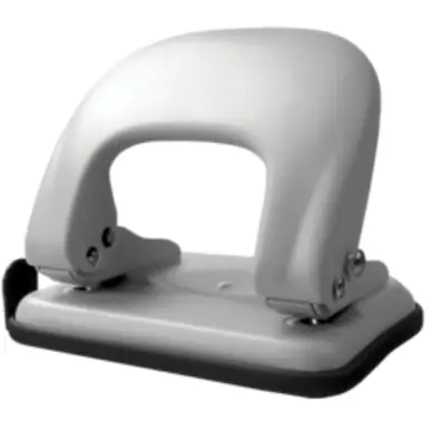 Metal office punch in a matte housing. It has a lever lock, a page center indicator and a format delimiter. Punches up to 25 sheets.