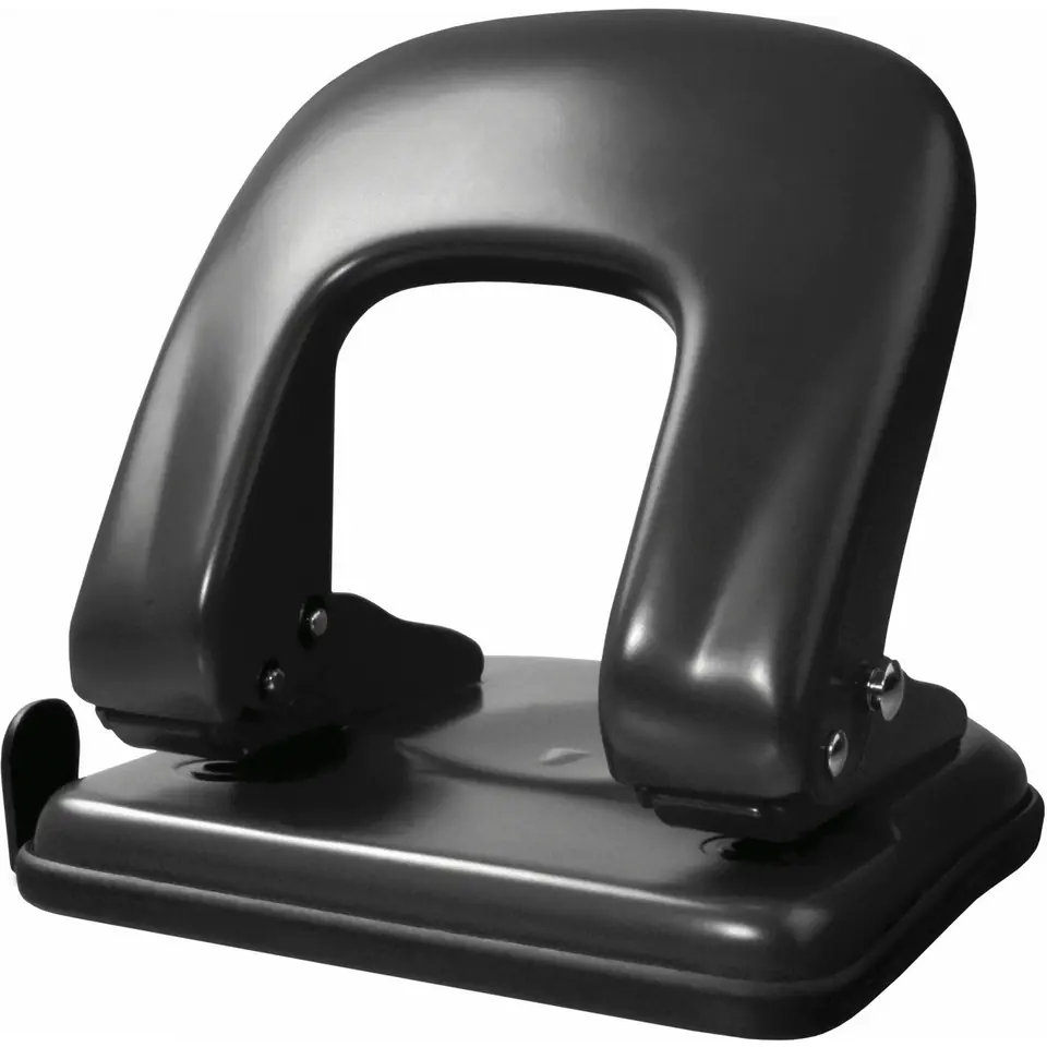 Metal office punch in a matte housing. It has a lever lock, a page center indicator and a format delimiter. Punches up to 35 sheets.