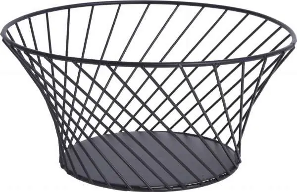 Metal wire fruit basket in black. Maintained in a modern design. Ideal for kitchens for fruits or vegetables, for terrace, garden party. It will serve perfectly in the living room as a patera or container for various types of accessories.