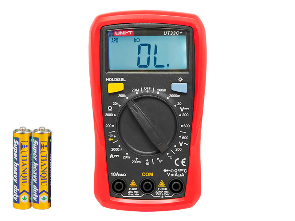 Hand size meter with outstanding performance and drop-resistant housing. The bright and legible display makes it easy to use the device. The UT33 Series provides users with safe operation in a CAT II 600V environment.