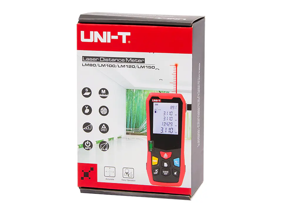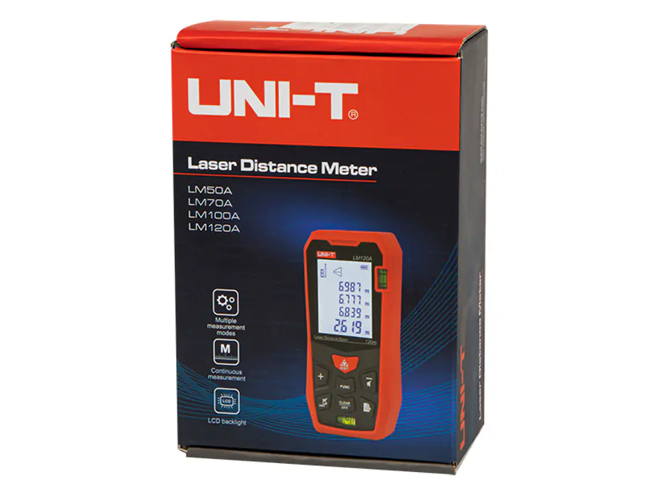 The UT393A laser distance meter is a reliable measuring tool for determining distances. It is characterized by exceptional accuracy, quick response and a long distance of measurement. From the wide and legible display, you can easily read the measurement result, and the built-in spirit level will facilitate measurement and ensure greater accuracy.