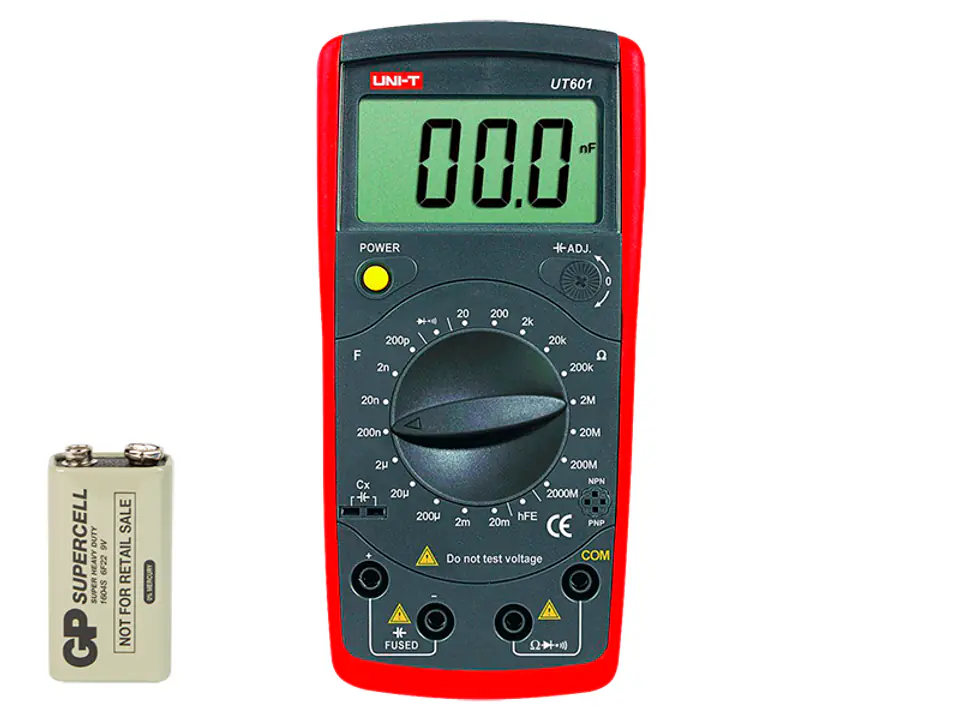 - Capacity: 200 pF/2 nF/20 nF/200 nF/2 μF/20 μF/200 μF/2 mF/20 mF; ±(0.5%+10)
