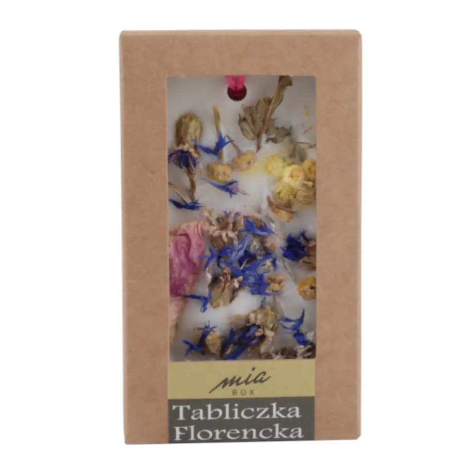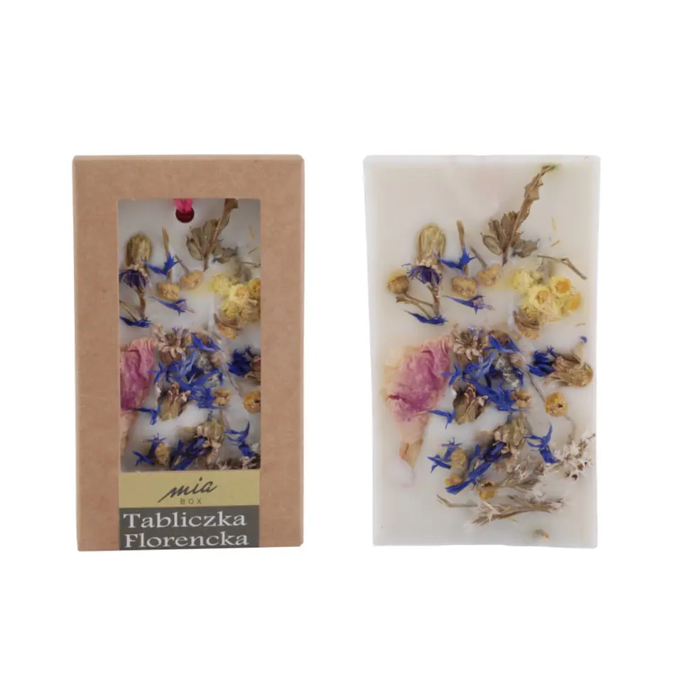 Hand-made, unique soy wax plate with the addition of fragrance oils, shea butter, dried flowers, fruits, herbs, grains and other ecological decorations. Slowly releasing its beautiful fragrance, it aromatizes rooms and improves mood. It is an aesthetic carrier of wonderful fragrance notes, which at the same time serve as unique elements of decoration. The Florentine plate is a natural, ecological replacement for synthetic fragrance hangers for a wide range of applications. Place it on a chest of drawers, hang it in the bathroom, put it in a drawer or closet, and its interior will be filled with a beautiful, seductive fragrance. This is a wonderful gift, original and unique. No two plates are the same. Their execution is 100% handmade;).