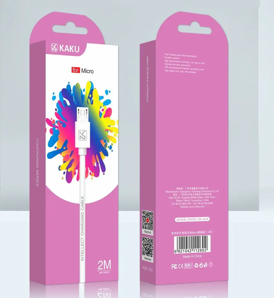 Micro USB 2.4A Cable 2m Fast Charging & Data Transfer KAKU KSC-332) whit