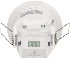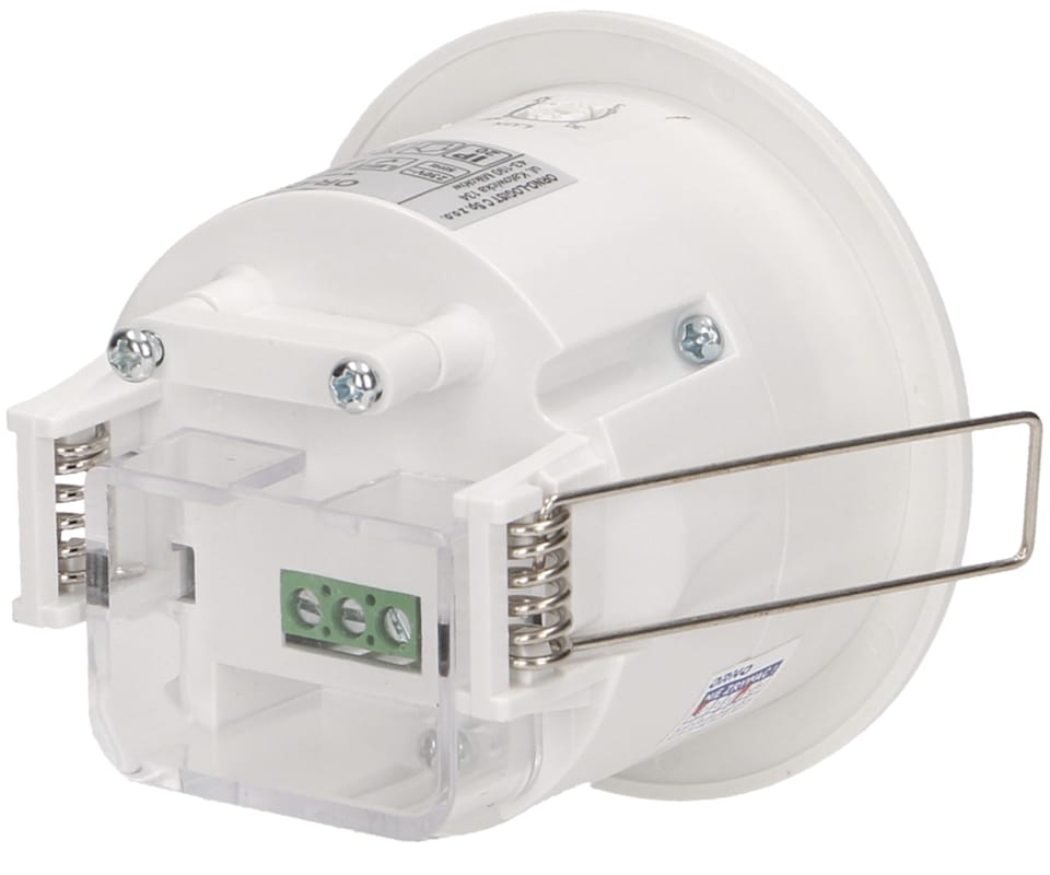 Microwave (radar) motion sensor adapted for installation in suspended ceilings, is an active motion detector that sends high-frequency electromagnetic waves (5.8GHz) and receives their echo. The sensor detects changes in the echo, caused by even the slightest movement in the observed area. Low power emission (<0,2mW), potencjometry do regulacji: czasu świecenia, zasięgu wykrywania ruchu i czułości natężenia światła. Detekcja ruchu przez szkło, tworzywa sztuczne, płyty kartonowo-gipsowe, brak wpływu temperatury na detekcję. Czujnik współpracuje z oświetleniem LED-owym.