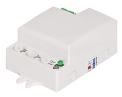 The microwave (radar), small motion sensor is an active motion detector that sends high-frequency electromagnetic waves (5.8GHz) and receives their echo. The sensor detects changes in the echo, caused by even the slightest movement in the observed area. Low power emission (<0,2mW), potencjometry do regulacji: czasu świecenia, zasięgu wykrywania ruchu i czułości natężenia światła. Detekcja ruchu przez szkło, tworzywa sztuczne, płyty kartonowo-gipsowe, brak wpływu temperatury na detekcję. Płaska obudowa umożliwia montaż w puszcze podtynkowej ?60 mm. Czujnik współpracuje z oświetleniem LED-owym. Wymiary: 54,5 × 25 × 39,4 mm (szer./wys./gł.)