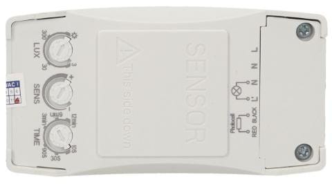 A microwave (radar) motion sensor with an external sensor is an active motion detector that sends high-frequency electromagnetic waves (5.8GHz) and receives their echo. The sensor detects changes in the echo, caused by even the slightest movement in the observed area. Low power emission (<0,2mW), potencjometry do regulacji: czasu świecenia, zasięgu wykrywania ruchu i czułości natężenia światła. Brak wpływu temperatury na detekcję. Czujnik współpracuje z oświetleniem LED-owym.