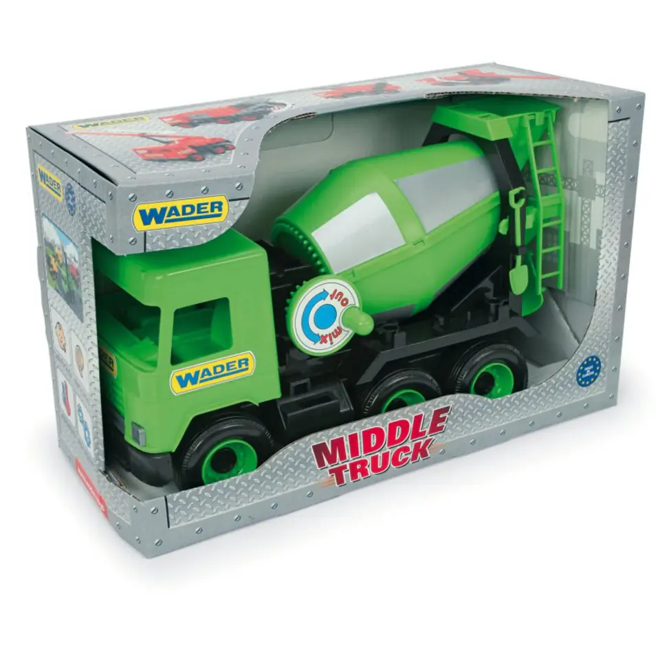 The concrete mixer has a rotating bulb, a removable gutter for concreting. Packaged in a colored carton.