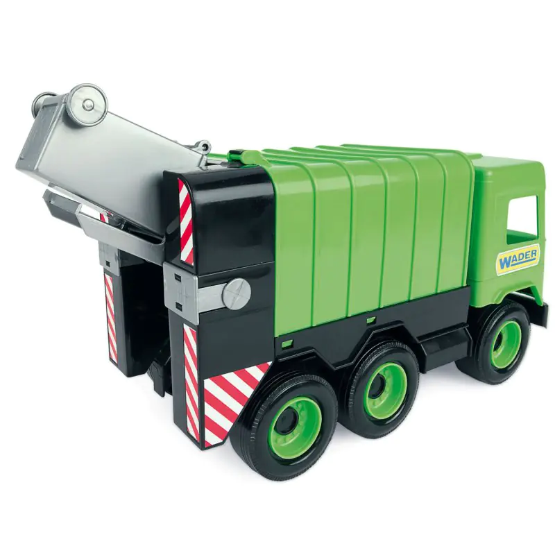 The vehicle has many moving parts that will add variety to the fun of, for example, a garbage container, a lift to empty the container and the rear hatch to be opened.