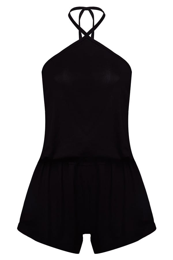 ZMYSŁOWY WISKOZOWY KOMBINEZON Z KRÓTKIMI SPODENKAMI, WYKONANY Z MIĘKKIEJ W DOTYKU WISKOZOWEJ DZIANINY. W PASIE ODCIĘTY GUMKĄ,KTÓRA POZWALA NA ODPOWIEDNIE DOPASOWANIE. GÓRA WYKOŃCZONA CZARNĄ WISKOZOWĄ LAMÓWKĄ, WIĄZANY NA SZYI. DOSTĘPNA WERSJA KOLORYSTYCZNA ZAWSZE Z CZARNYM DOŁEM