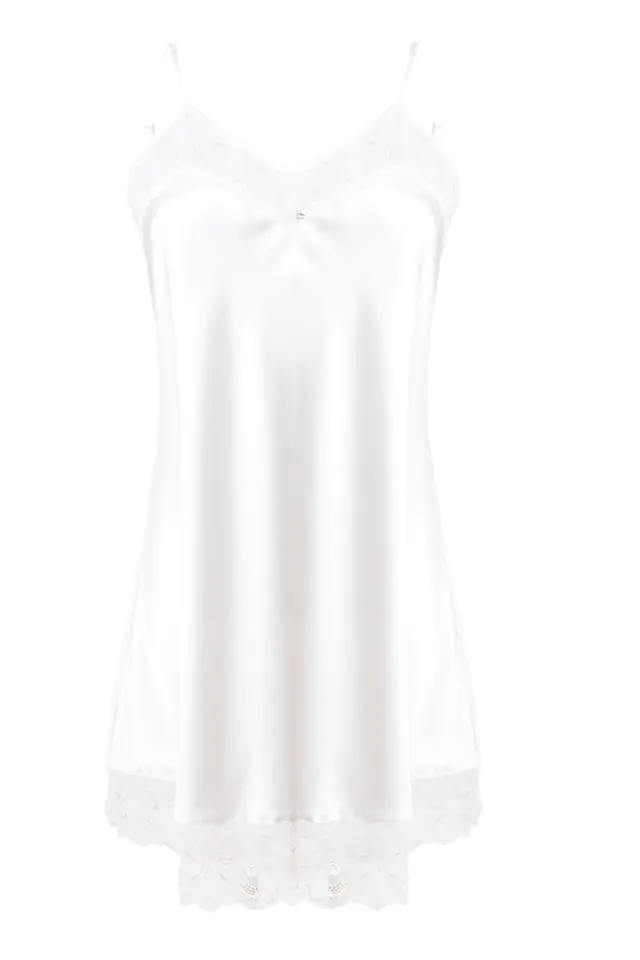 Kolejna, bardzo udana propozycja od Dkaren, czyli koszulka Milan. Dostępna w kilku kolorach do wyboru. Gładka, satynowa, z koronkowym wykończeniem zarówno na dekolcie, jak i w okolicach ud. Wygodny fasonik. Skład: 100% poliester.