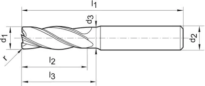 Mandrel cutter, solid carbide, corner radius
