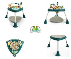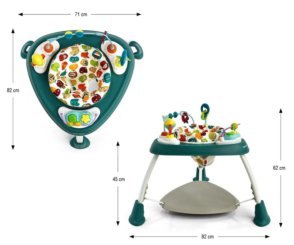 Centrum Aktywności BOUNZEE to idealne rozwiązanie dla rodziców, którzy pragną zapewnić swojemu dziecku bezpieczną, kreatywną i pełną radości przestrzeń do zabawy. Zaprojektowane z myślą o najmłodszych odkrywcach, łączy w sobie funkcję skoczka i stolika sensoryczny, oferując niekończącą się zabawę połączoną z nauką poprzez ruch i odkrywanie świata.Kolorowe, miękkie siedzisko obraca się o 360 stopni, co pozwala dziecku swobodnie sięgać po wszystkie zabawki rozmieszczone wokół. Każdy z elementów został stworzony tak, aby rozwijać zmysły i koordynację – grzechotki, obracające się kółka, gryzaczki oraz elastyczne zabawki zachęcają do chwytania, ściskania i obracania, pobudzając ciekawość oraz zdolności manualne. Dzięki sprężystym pasom BOUNZEE pozwala maluchowi na delikatne podskakiwanie, co nie tylko sprawia ogromną frajdę, ale też wspiera rozwój mięśni nóg i kształtowanie równowagi.Stabilna konstrukcja urządzenia została zaprojektowana tak, aby zapewnić pełne bezpieczeństwo podczas zabawy. Antypoślizgowe nóżki gwarantują stabilność nawet podczas najbardziej energicznych ruchów, a miękkie, dobrze dopasowane siedzisko dba o komfort dziecka.Centrum Aktywności BOUNZEE to nie tylko zabawka, ale prawdziwe miejsce pełne radości, ruchu i inspiracji. Wspiera rozwój malucha na każdym etapie jego pierwszych miesięcy, zachęcając do samodzielności, aktywności i odkrywania świata w kolorowy, bezpieczny sposób. Każda chwila spędzona z BOUNZEE to niepowtarzalne doświadczenie – pełne uśmiechu, muzyki/dźwięków i nowych odkryć, które sprawiają, że nauka staje się prawdziwą zabawą. Wielofunkcyjność pozwala przekształcić Centrum aktywności w samodzielny stoliczek.BOUNZEE jest stabilne i bezpieczne. Jest rekomendowane dla dzieci w wieku od 6 miesiąca i do wagi max.11kg.CHARAKTERYSTYKA: