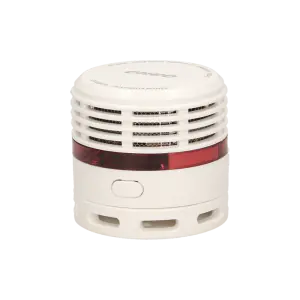 The world's smallest battery smoke detector, designed to monitor rooms for smoke and early fire detection. The photoelectric sensor detects visible smoke generated in the flameless, initial stage of a fire, optical and sound notification, TEST button allows you to check the correct operation of the sensor, HUSH button allows you to mute the sound signal, signaling of weak batteries, easy installation, extremely durable design, compliance with EN 14604: 2005 + AC1: 2008 confirmed by the certification body BSI-KM514007. The end of the sensor's life is indicated by an audible signal. Dimensions: 45 × 42 mm (D/H)