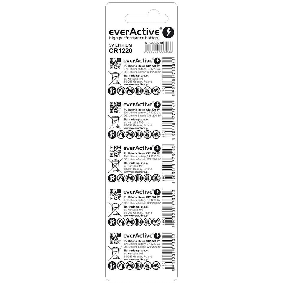 EverActive CR1220 lithium battery - 5 pieces in a blister