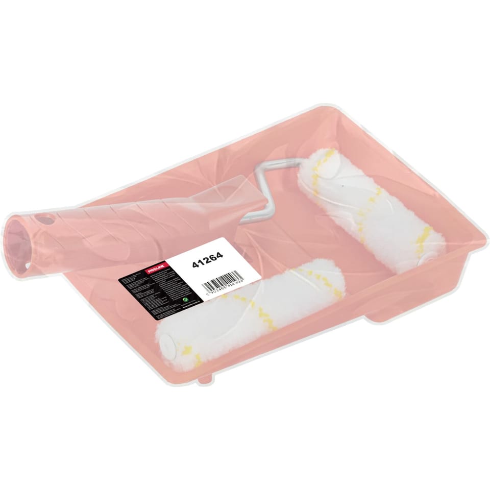 - The set includes: short and lightweight handle with steel wire Ø 6 mm, 2 insers sized 100 x 10 mm and a paint tray sized 140 x 190 mm