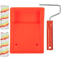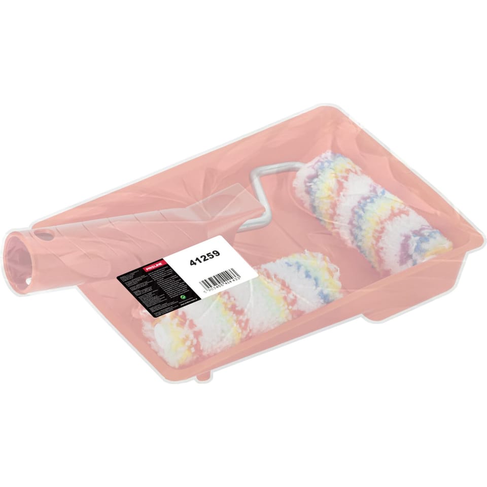 - The set includes: short and lightweight handle with steel wire Ø 6 mm, 2 insers sized 100 x 10 mm and a paint tray sized 140 x 190 mm