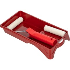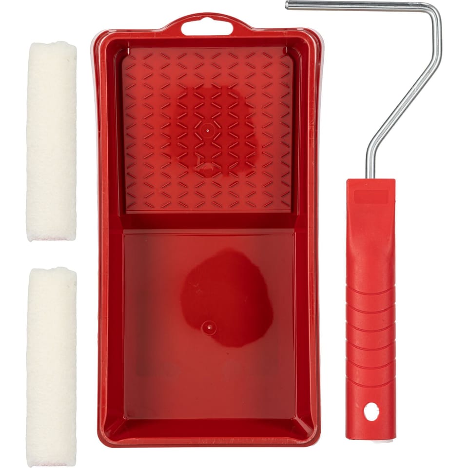 - The set includes: short and lightweight handle with steel wire Ø 6 mm, 2 insers sized 100 x 10 mm and a paint tray sized 140 x 190 mm