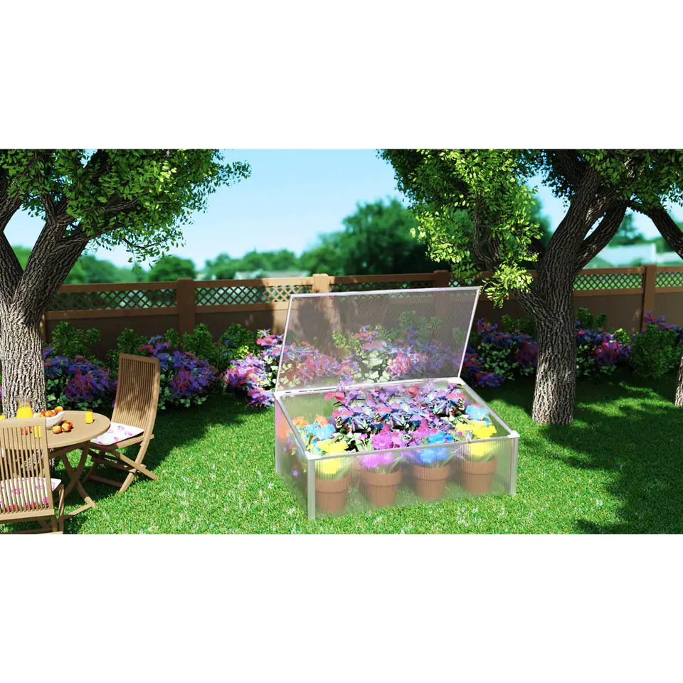Materiału PC o gramaturze aż 500 g/m2 jest odporny na promienie UV oraz deszcz. Mini-szklarnia posiada także uchylne okno, które zapewnia dobrą cyrkulację powietrza.