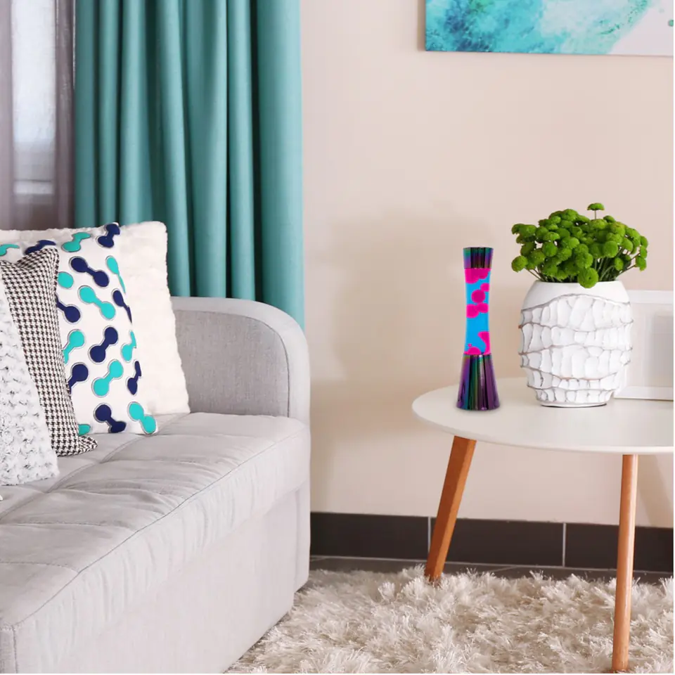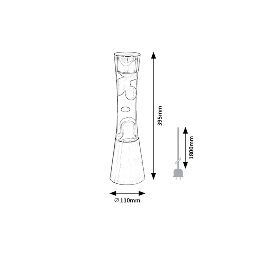 A slim Minka decorative lamp will be a great addition to the living room, bedroom or children's room. The lamp with lava in rainbow colors is made of plastic and glass, and to start it you need one bulb with a power of up to 20 W. The type of lamp holder is GY6.35. Minka is a child-safe model designed by Rabalux. Varied colors of the luminaire and rainbow decoration in the form of lava overflowing inside will certainly appeal to the youngest, who will be happy to admire it before bedtime. The magical atmosphere created by this lava lamp can also be enjoyed by adults in the evening in the living room or bedroom. The height of the Mink lamp is 395 mm and the diameter is 110 mm. The model is on sale complete with a light source and power supply. The warm-up time is 3 hours.