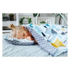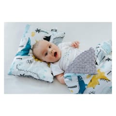 Minky blanket 100x135cm (Dinosaurs) Minky blanket with a light fluffy anti-allergic filling in size 100x135cm. Blanket perfect for a crib, for an afternoon nap, for kindergarten, as a play mat, and as a favorite duvet during a trip. The universal size makes it ideal for a baby as well as for an average – it is suitable for a cot, stroller and also as a play mat throughout the year. One side is made of 100% high-quality cotton, which does not argue and does not lose its properties even after repeated washing, while the other side is made of extremely soft and pleasant to the touch minky fleece, which will wrap the baby and give him a sense of comfort. Minky fleece makes the blanket original, elegant and extraordinary. Inside, filled with anti-allergic, silicone non-woven fabric, giving it an extraordinary lightness, while providing pleasant warmth. The minky blanket can be completed with a pillow, the same pattern creating a unique arrangement of the twig or the baby's room. Fashionable design will add charm and grace to any room. The author's pattern will ensure the uniqueness of the toddler's room décor. The blanket is an unforgettable gift for baby showers, birthdays and all other occasions. The product is sewn by hand using the best quality materials. All PULP products are Oeko-Tex Standard 100 certified and safe for the child. Washing without fear of losing quality: - wash at 40 °, gentle program, light spinning, - iron only cotton fabric - do not use bleach, - do not tumble dry. 11210-80