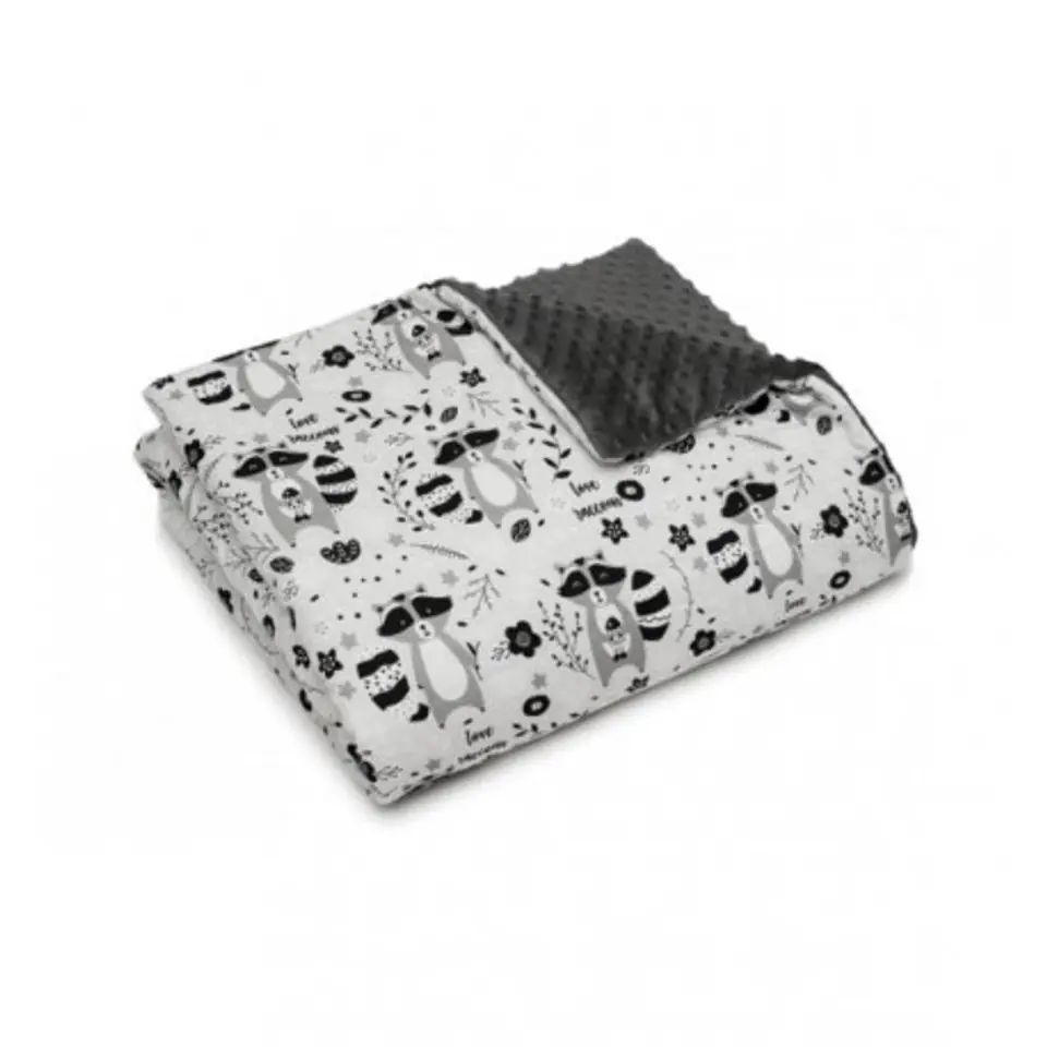 Minky blanket 100x135cm (Sheds) Minky blanket with light fluffy anti-allergic filling in size 110x135cm. Blanket perfect for a crib, for an afternoon nap, for kindergarten, as a play mat, and as a favorite duvet during a trip. The universal size makes it ideal for a baby as well as for an average – it is suitable for a cot, stroller and also as a play mat throughout the year. One side is made of 100% high-quality cotton, which does not argue and does not lose its properties even after repeated washing, while the other side is made of extremely soft and pleasant to the touch minky fleece, which will wrap the baby and give him a sense of comfort. Minky fleece makes the blanket original, elegant and extraordinary. Inside, filled with anti-allergic, silicone non-woven fabric, giving it an extraordinary lightness, while providing pleasant warmth. The minky blanket can be completed with a pillow, the same pattern creating a unique arrangement of the twig or the baby's room. Fashionable design will add charm and grace to any room. The author's pattern will ensure the uniqueness of the toddler's room décor. The blanket is an unforgettable gift for baby showers, birthdays and all other occasions. The product is sewn by hand using the best quality materials. All PULP products are Oeko-Tex Standard 100 certified and safe for the child. Washing without fear of losing quality: - wash at 40 °, gentle program, light spinning, - iron only cotton fabric - do not use bleach, - do not tumble dry. 11210-79