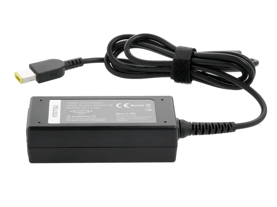 The new IBM Lenovo Mitsu laptop power supply is equipped with a ferrite filter and excellent protection against overvoltage, overheating, overload and overcharging. IBM Lenovo laptop chargers are aimed at the most demanding users, who appreciate stress-free and comfortable work. The quality of the product is confirmed by the following certificates: CE, ROHS, FCC and strict quality control eliminating possible defects.