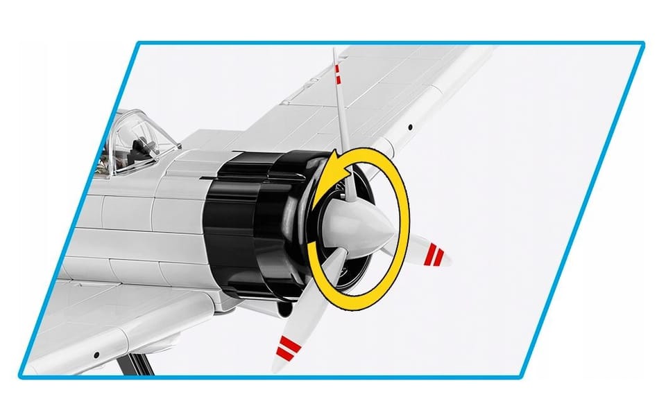 Assembling World War II fighter blocks is a great way to spend time and pursue your passion for history and modelling. The Mitsubishi A6M2 building block set contains 347 pieces and one pilot figure. The fighter plane model from COBI has been created with attention to the smallest details. The plane has a movable propeller and ailerons. Its rotating wheels with rubber tyres can be extended from the undercarriage in the take-off or landing position. The cabin can be opened to seat a pilot figure at the controls, which has an accurately reproduced uniform and a print on the back too! The aircraft has been covered with high-quality prints that will not rub off even during intensive use. The set also comes with a special stand to make the model's display more attractive and a plaque with the aircraft's name. The block model of the Japanese fighter is sure to please young aircraft fans as well as older aviation history enthusiasts and collectors.
