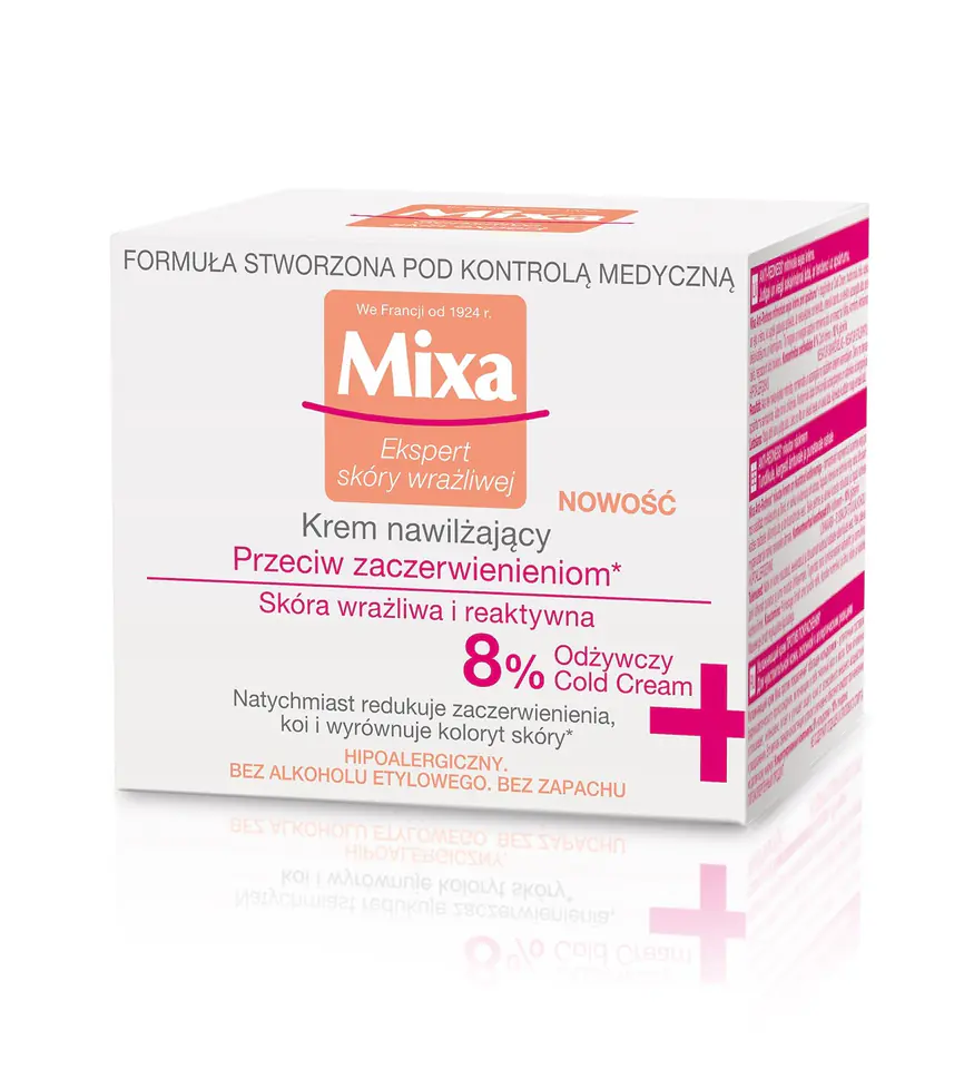 Mixa Moisturizing cream against redness has been enriched with Cold Cream, a combination of active ingredients inspired by pharmacy recipes, and with beeswax and oils to instantly soothe and intensively nourish the skin, while protecting it from harmful external factors and irritations. Its delicate, fresh formula soothes and gives an immediate sense of comfort during application, without leaving an oily layer on the skin. Concentrated ingredients: 8% Cold Cream + 10% glycerin. Hypoallergenic. No ethyl alcohol. Odorless. Noticeable results! The skin is immediately moisturized, soothed and better protected from the effects of harmful external factors. Day after day, redness is reduced and the skin tone becomes more uniform. The natural functional barrier of the skin is strengthened.