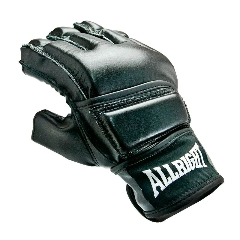 Popular and solidly made mma gloves, often also used for training with a punching bag. They provide very good protection and shock absorption. This is a great product for beginners and intermediate players. • Material: natural leather on the outside, PU synthetic leather on the inside• Filling: foam about 1.5cm divided into sections• Wrist pulled with a belt with velcro fastener• Open toes• Color: black
