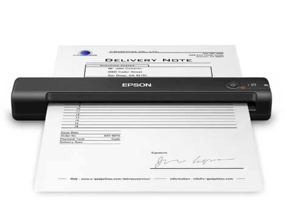 The fastest and lightest single-sheet mobile document scanner in its class, the WorkForce ES-50 features high speed - scanning a single page in just 5.5 seconds. This small, portable scanner supports exceptionally long pages, ID cards and much more. Epson ScanSmart 3 software allows you to easily scan, view and save important files, and the automatic feed mode makes it easy to combine multi-page scans into one file. With the included Nuance OCR software, you can create searchable PDF files and editable Word and Excel files. Windows and Mac, the scanner also includes a TWAIN driver. And no batteries or external power is required when it is connected to the computer via USB.